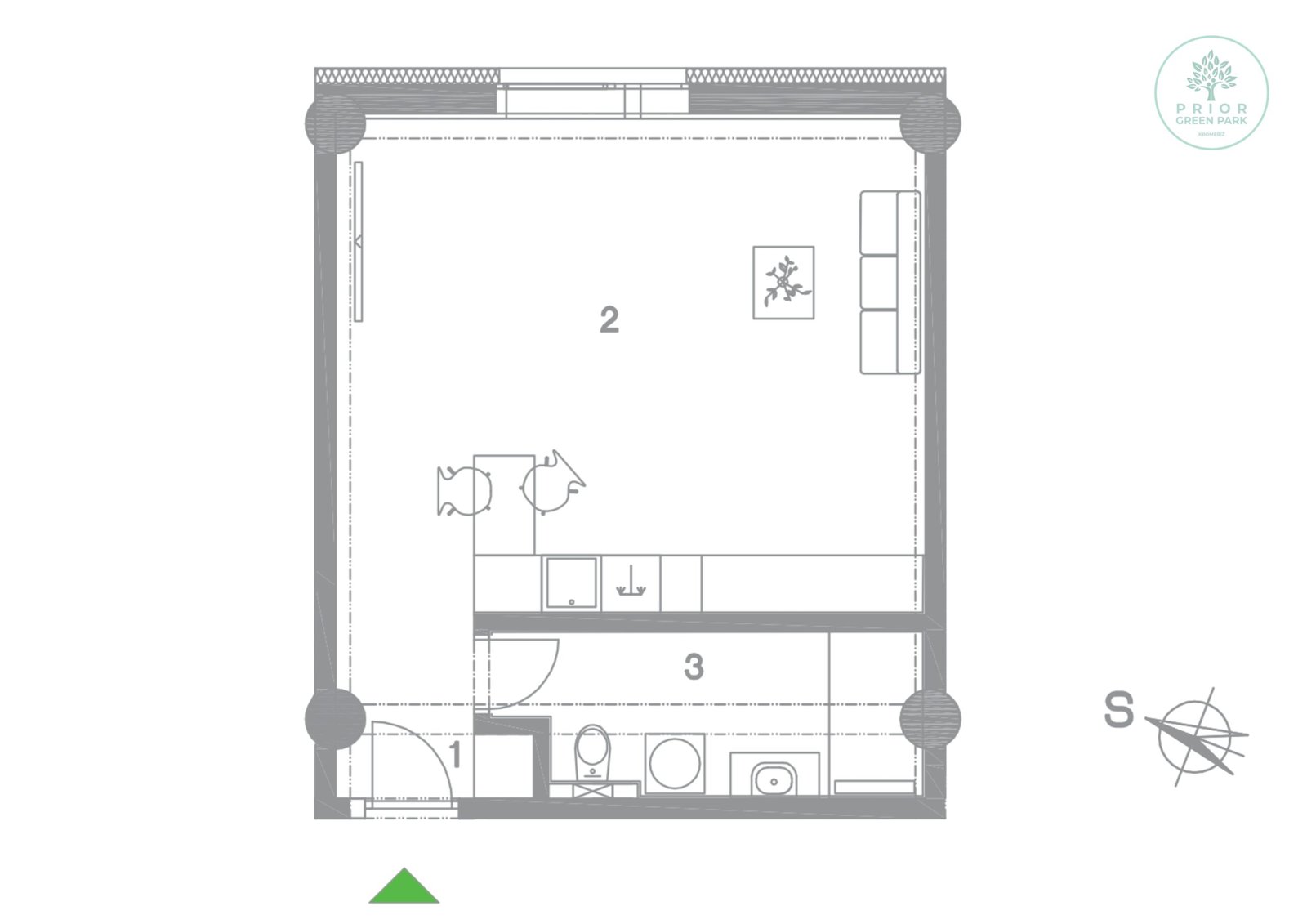Schéma půdorysu bytu představuje předpokládané dispoziční řešení. Kuchyňské linky, nábytek a interiérové doplňky nejsou předmětem dodávky. Výměry jednotlivých místností jsou pouze orientační. Investor se tímto nevzdává práva na případné úpravy či doplnění marketingového materiálu.