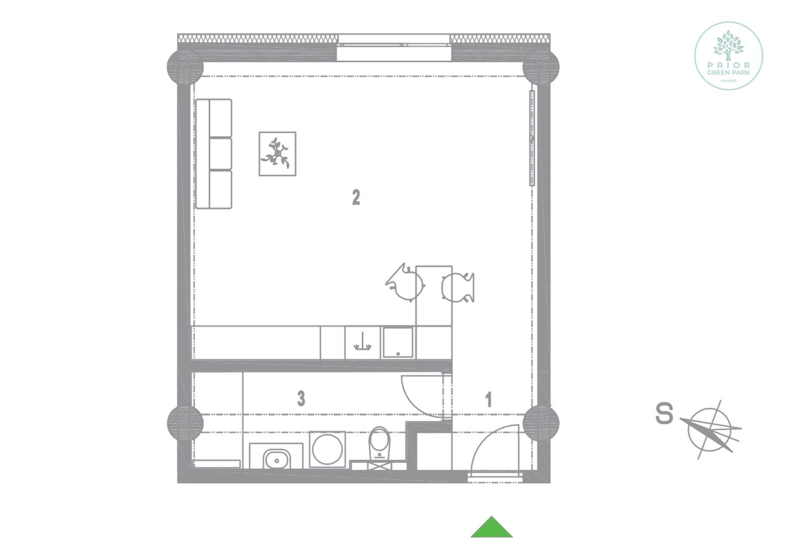 Schéma půdorysu bytu představuje předpokládané dispoziční řešení. Kuchyňské linky, nábytek a interiérové doplňky nejsou předmětem dodávky. Výměry jednotlivých místností jsou pouze orientační. Investor se tímto nevzdává práva na případné úpravy či doplnění marketingového materiálu.